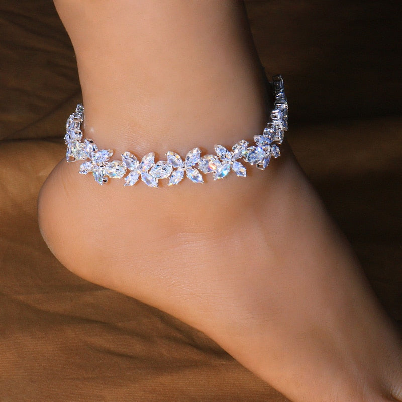Shimmery, sparkiling, and splendid! This delicately crafted anklet will add a dazzling accent to your next look. Choose to have your order processed and plated with 18K gold or platinum over 304 stainless steel. Each anklet is set with precision cut crystals and hand polished to a pristine shine.