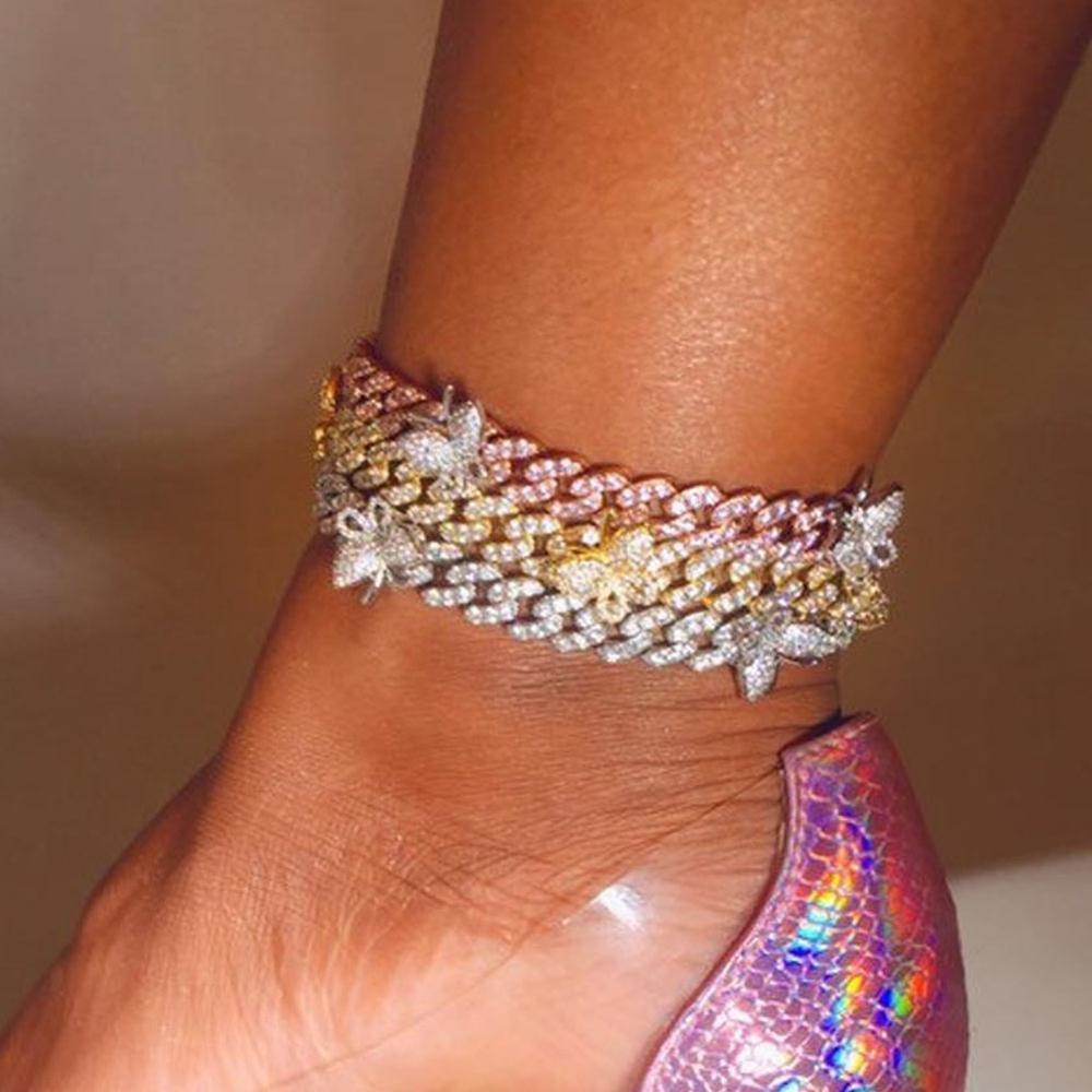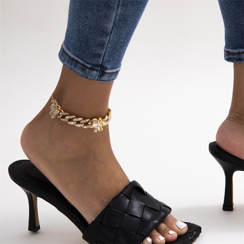 Crystal Butterfly Cuban Link Anklet