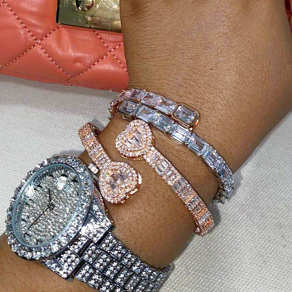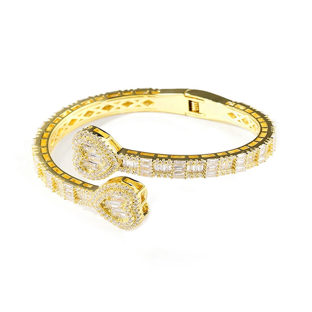 Shimmery, sparkling, and splendid! This delicately crafted bangle adds the perfect amount of sparkle to any look. Choose to have your order processed and plated with 18K gold, rose gold, or platinum over 304 stainless steel. Each bangle is set with precision cut baguette crystals and hand polished to a pristine shine.