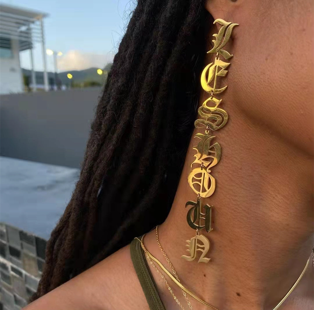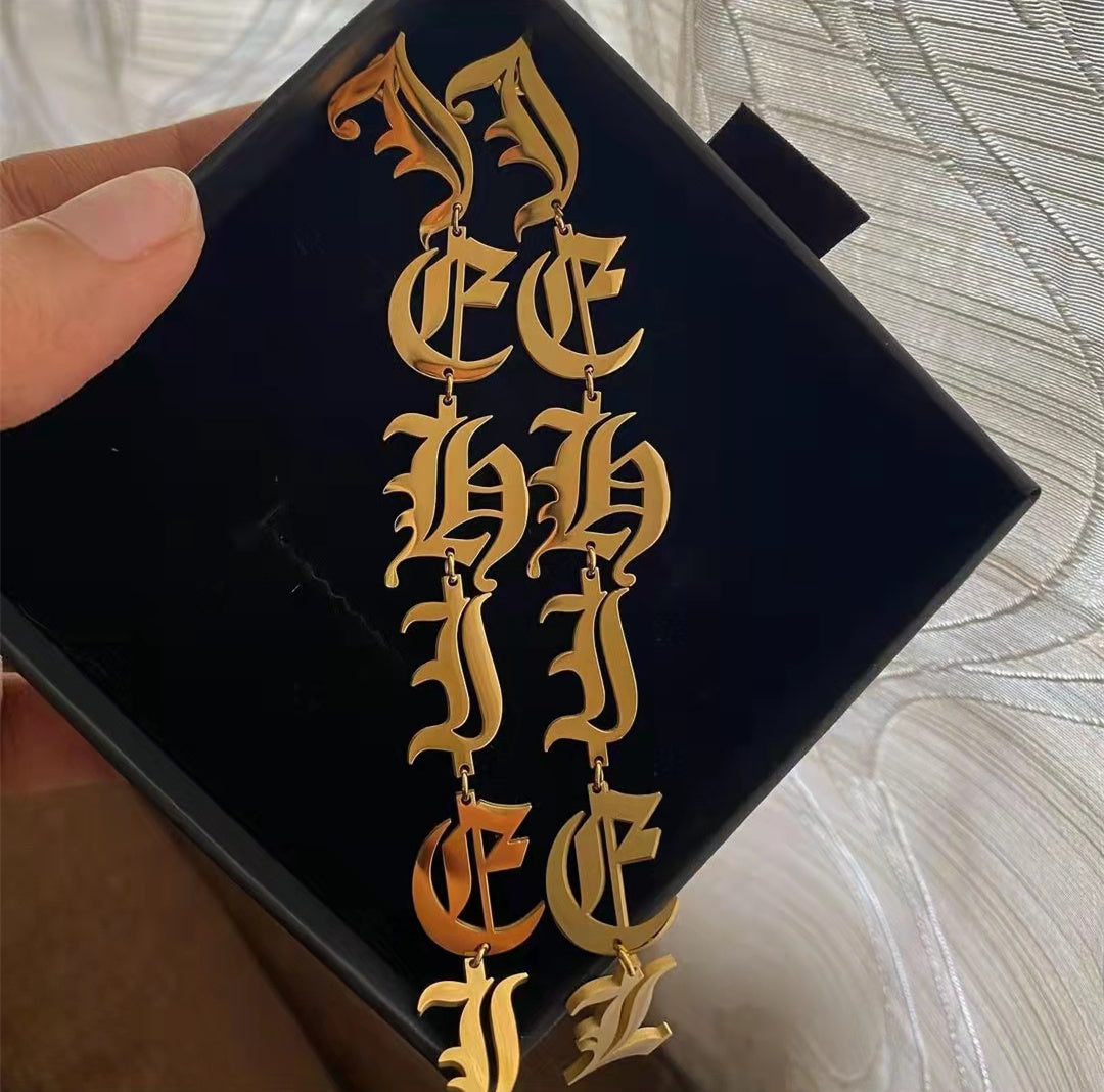 Custom Old English Dangle Earrings