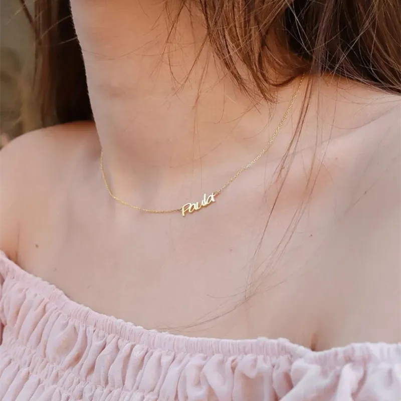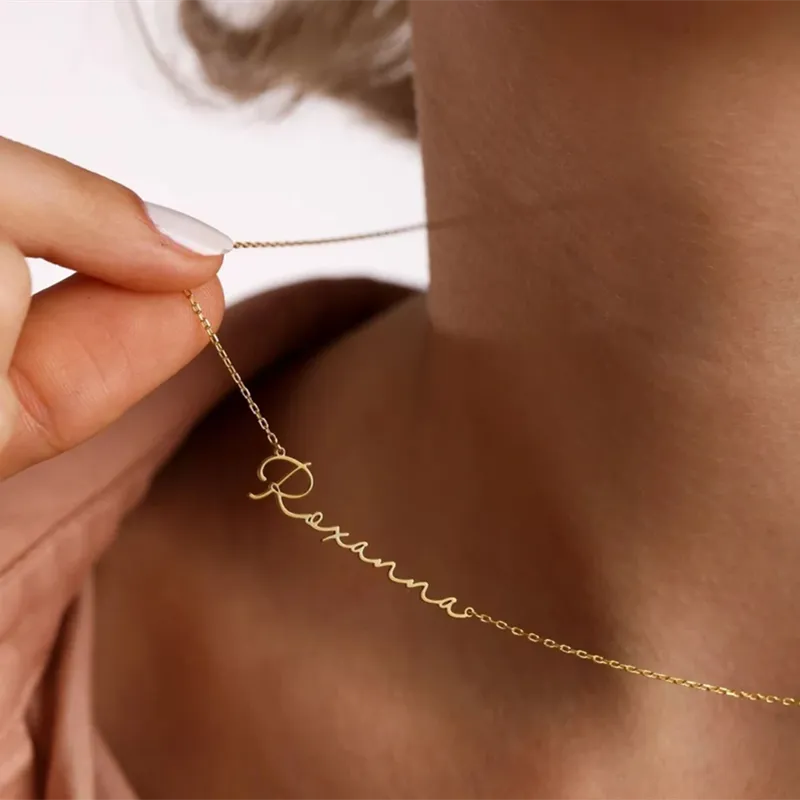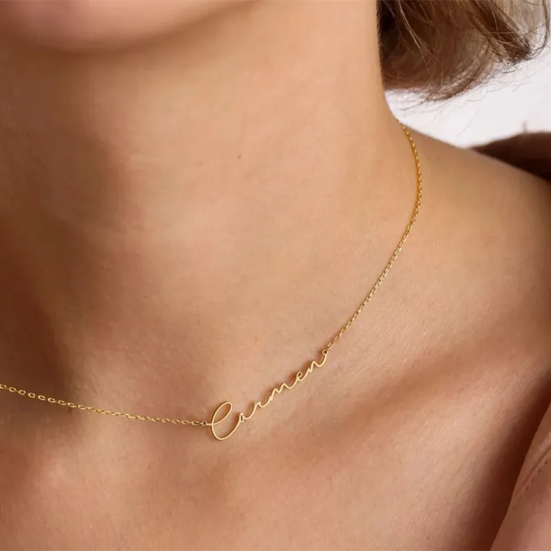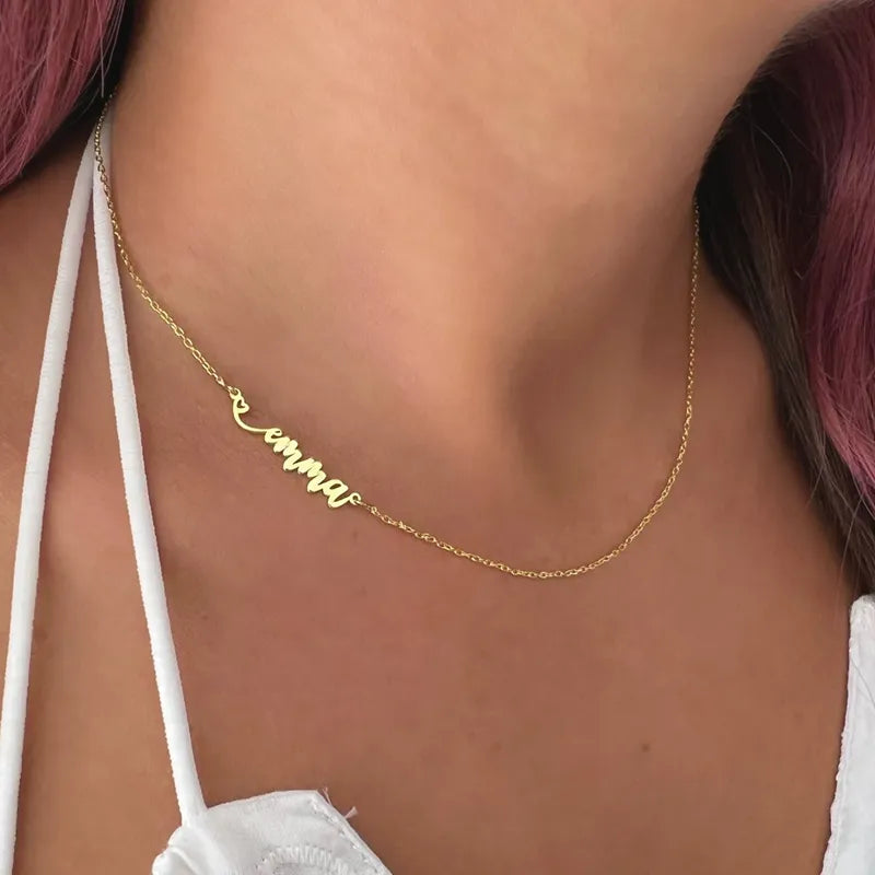 A dainty staple! Delicately crafted into a classical cursive font to elegantly personalize the way you accessorize. Pair with a soft day look and take your outfit to the next level. Processed and plated with 18K gold, rose gold, or platinum for you to choose from. Perks? You'll never have to worry about this necklace tarnishing or losing its quality, and it's in your budget!