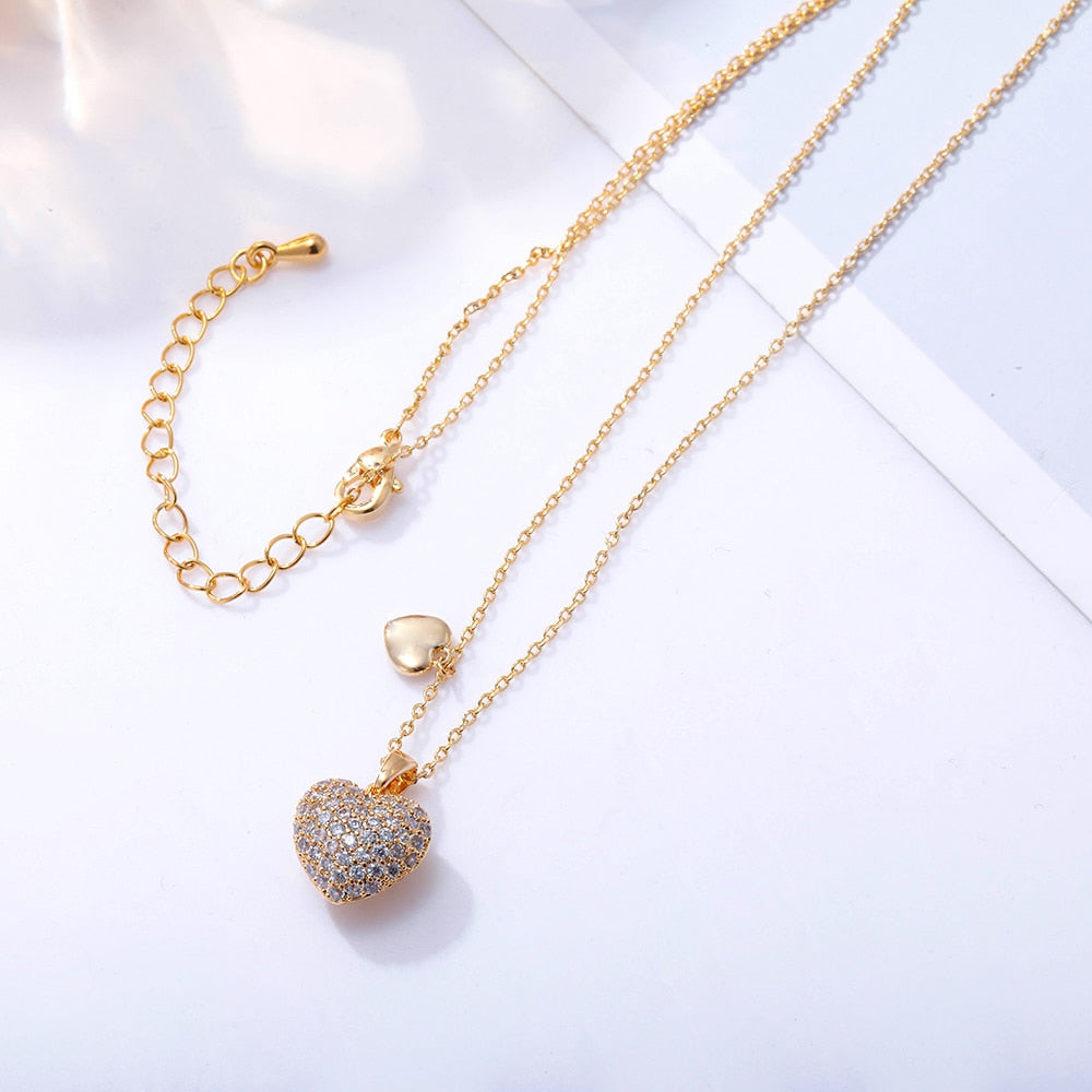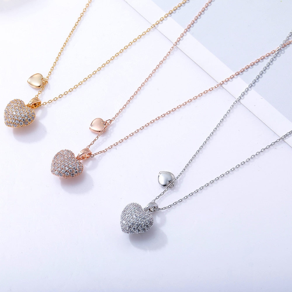 Take you look to a more dainty level with the Crystal Heart Necklace. Finished with two hearts, one being embellished with pure AAA crystals to give the perfect accent to your next casual look. Choose to have your order processed and plated with 18K gold, rose gold, or platinum over 304 stainless steel. You'll never have to worry about this necklace tarnishing or losing its quality. Best part? It's in your budget!