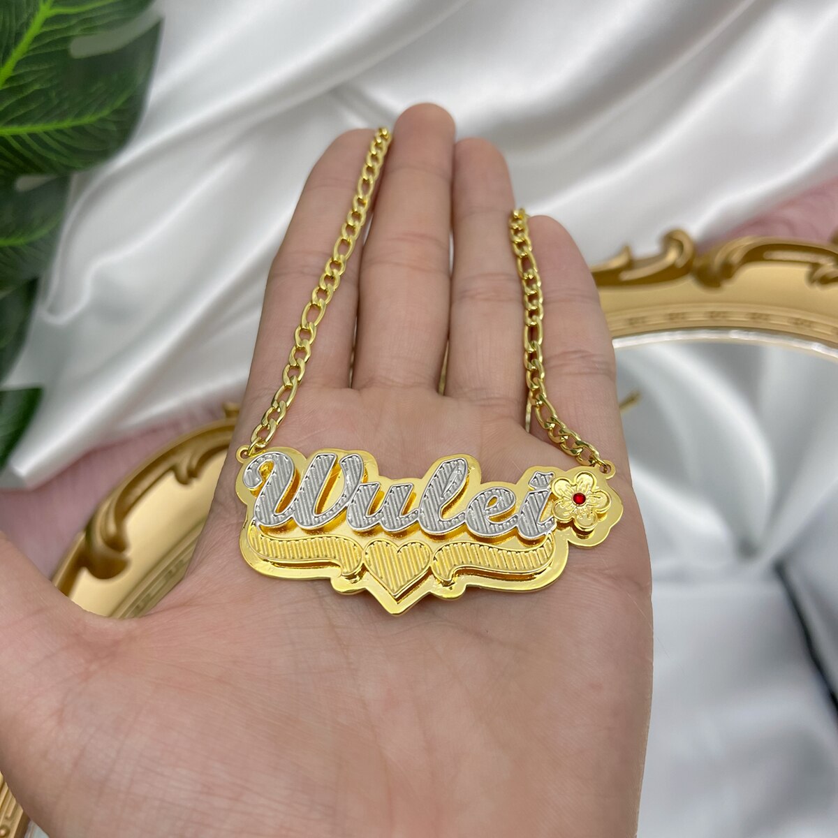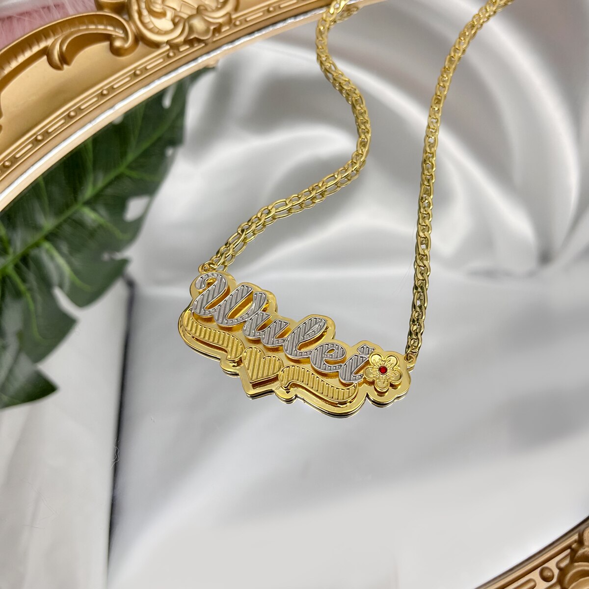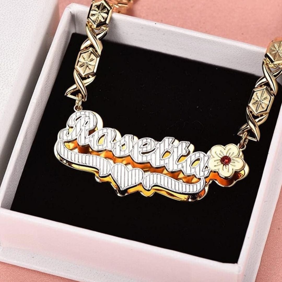 A dainty gilded masterpiece to complete your next look. This chunky custom necklace is plated twice with a high quality gold finish and polished to a pristine shine. Personalize the way you accessorize and add your personal stamp to the three dimensional stacked design.