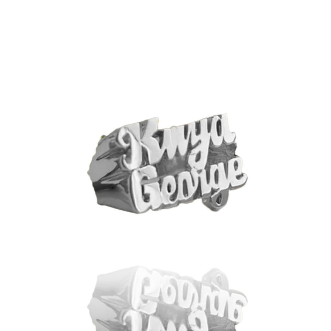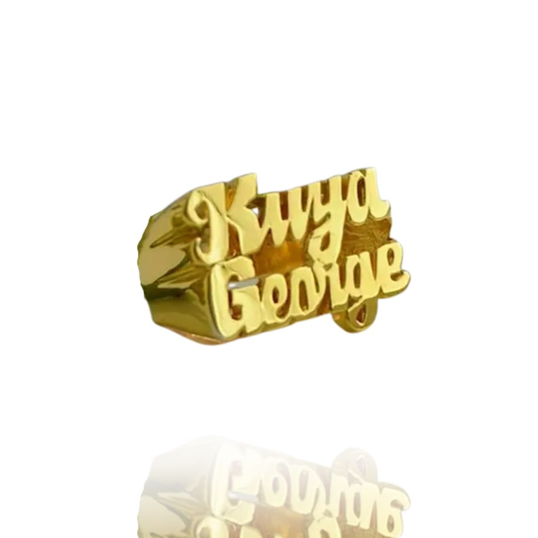 A golden masterpiece to complete your next look. This chunky custom ring is plated twice with a high-quality gold finish and polished to a pristine shine. Personalize the way you accessorize and add your personal stamp to the three-dimensional stacked design. Available metal colors include gold, rose gold, and platinum. Perks? You'll never have to worry about this ring tarnishing or losing its quality.