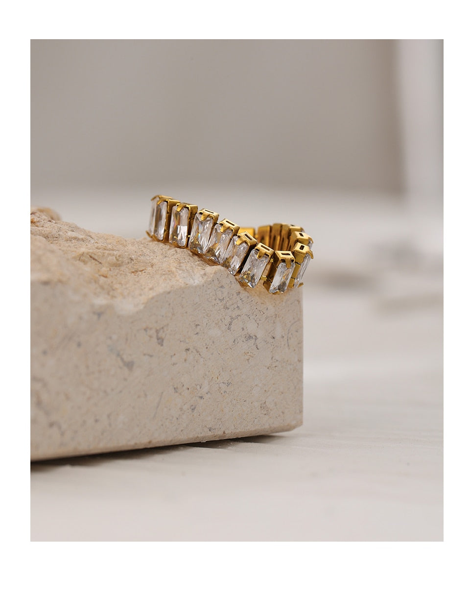 Ready to shine? This emerald cut pure Swiss AAA crystal ring will dazzle them muse. These crystals capture light from every different angle and twinkle a blinding rainbow of shine. Processed and plated with 18K gold, you'll never have to worry about this ring tarnishing or losing quality.