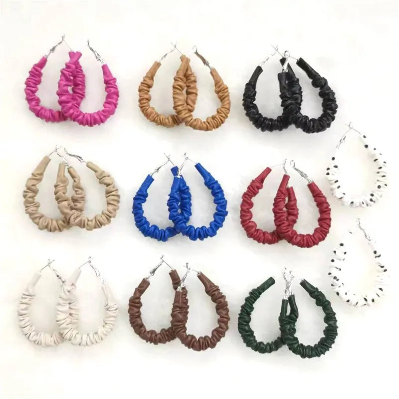 Add a chic touch to any outfit with these stylish faux leather hoop earrings. Perfect for fall and winter, these lightweight earrings are comfortable to wear and easy to style. Add a touch of sophistication to your everyday look.