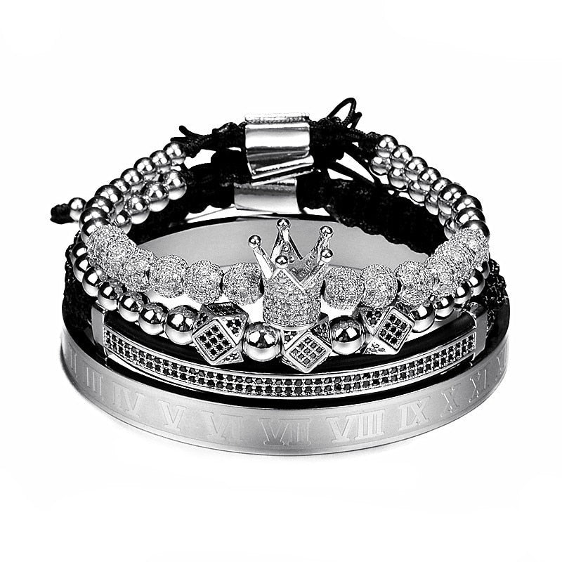Four bracelets beautifully crafted from 304 stainless steel or macramé cord. The roman numeral embraces a distinct and elegant look that can take any outfit to the next level. Dazzle your casual look with the polished and beaded macramé bracelets or wear them all together to surely catch eyes. This unisex design is for any muse. Choose to have your order processed and plated with 18K gold, rose gold, gun black metal, or silver over 304 stainless steel. You'll never have to worry about these bracelets tarnishing or losing their quality.