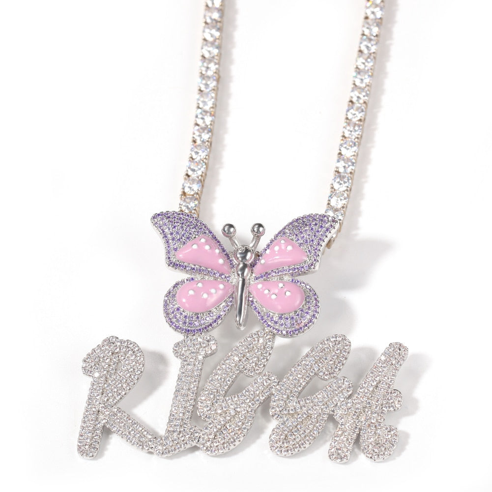 Float like a butterfly...sting like a bee! Make a statement with this dazzling pendant chain. Set with heart-shaped precision cut glass crystals and hand polished to a pristine shine, this choker is sure to catch eyes. Choose to have your order processed and plated with 18K gold, rose gold, or platinum over 304 stainless steel.
