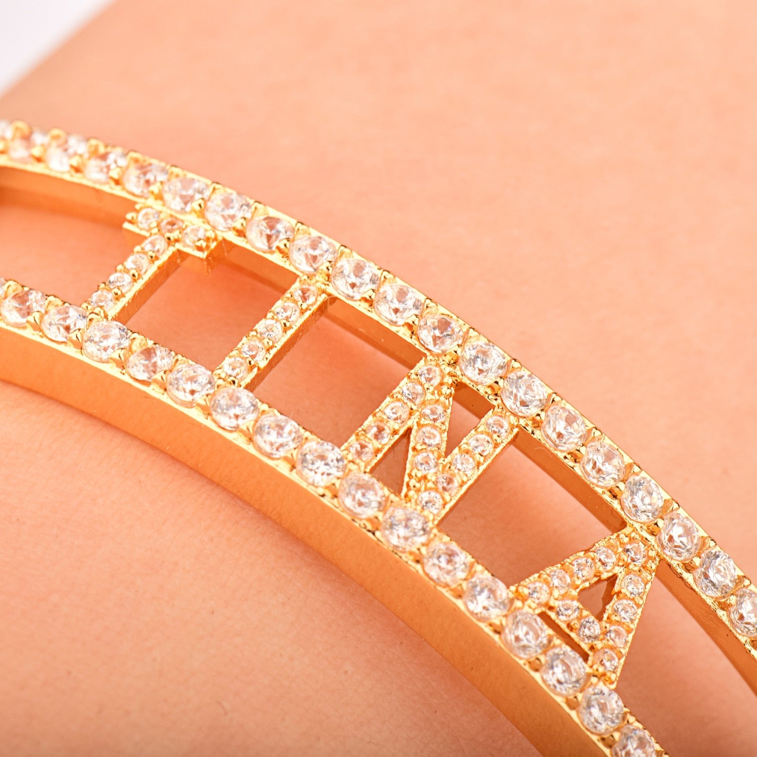 Do you have a name, phrase, or year that you hold dear? Personalize the way you accessorize with the Luxe Custom Slider Bracelet. Delicately crafted and embellished with precision cut crystals, this bracelet is sure to catch eyes. Add up to 10 letter charms and choose to have your design processed and plated in 18K gold, rose gold, or platinum.