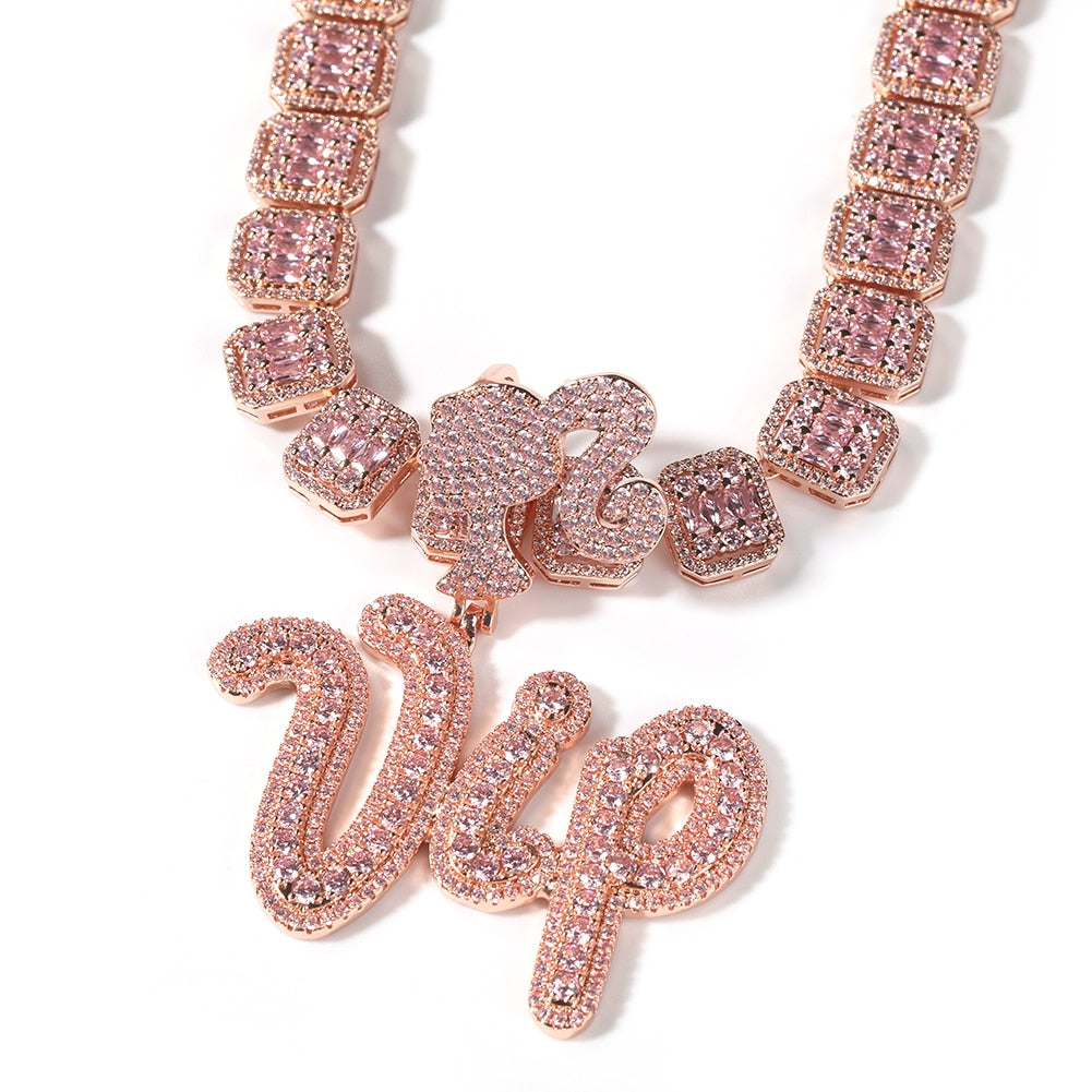 Personalize this high-quality luxury chain with any name or phrase that you hold dear. Your new chain can be plated with 18K gold, platinum, or rose gold. This dazzling masterpiece is set with heart-shaped precision cut crystals and hand polished to a pristine shine. This piece is sure to catch the eyes. Choose from the 2 chain types below.