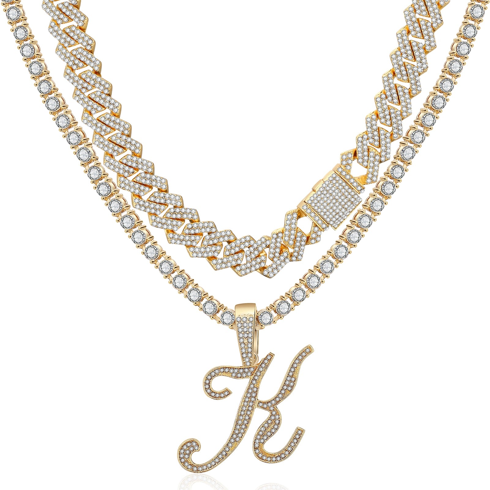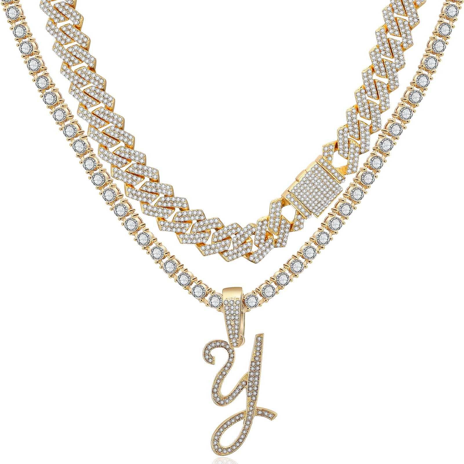 Bling bling muse! Take the way you accessorize to the next level with these dazzling chains. Delicately set with precision cut crystals and polished to a pristine shine, this set is sure to catch eyes. Choose to have your order processed and plated with 18K gold or platinum over 304 stainless steel.