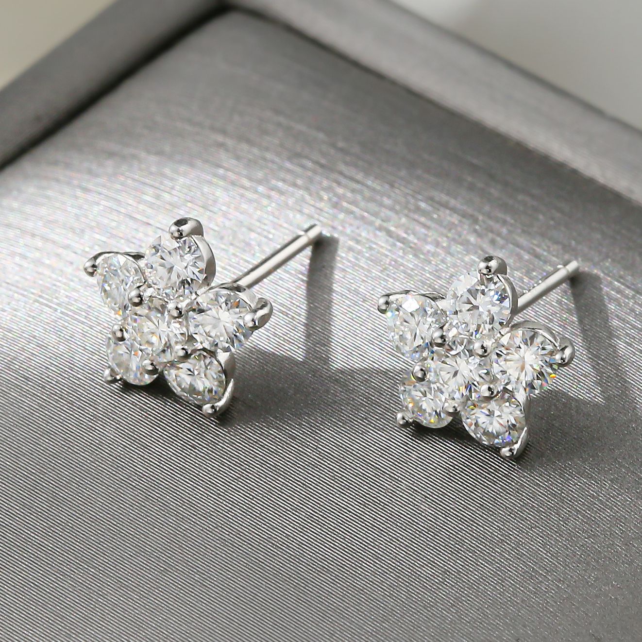 Moissanite Flower Stud Earrings