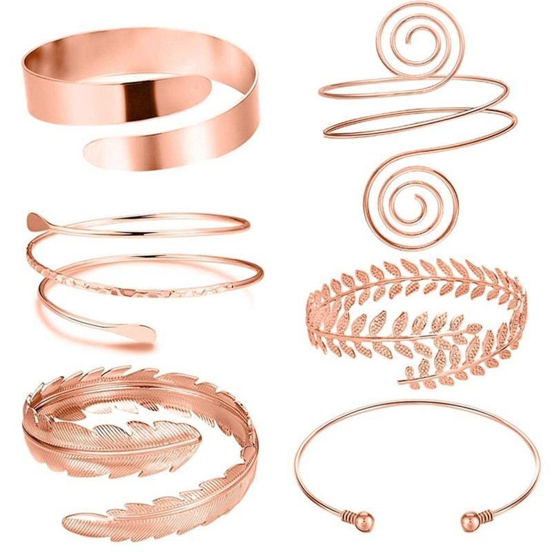 A refreshing array of boho arm cuffs sure to complete any beach look. Choose to have your order processed and plated with 18K gold, rose gold, or platinum over 304 stainless steel.