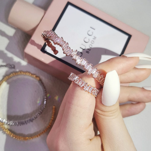 Shine bright with our new Crystal Cluster Shine Bracelet & Ring. Our crystals are arranged in a staggered fashion to catch light and eyes at all angles. Each bracelet and ring is embellished with high-quality pure Swiss AAA crystals and polished to a pristine shine. All bracelets are adjustable. Choose your ring size and metal color below!
