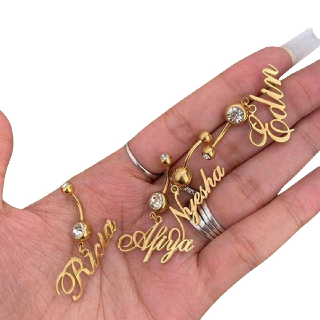 Customize your next belly ring with us today! Scroll through our product photos and select one of our various elegant fonts to have your customization created in. Choose to have your order processed and plated with 18K gold, rose gold, and platinum over 304 stainless steel. You'll never have to worry about this piece tarnishing or losing its quality. Best part? It's in your budget!