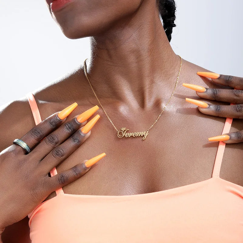 A MUSE Custom Jewelry bestseller. This design features a classical and timeless font fit for a queen. Choose to have your order processed and plated with 18K gold, rose gold, or platinum over 304 stainless steel. You'll never have to worry about this necklace tarnishing or losing its quality. Best part? It's in your budget!