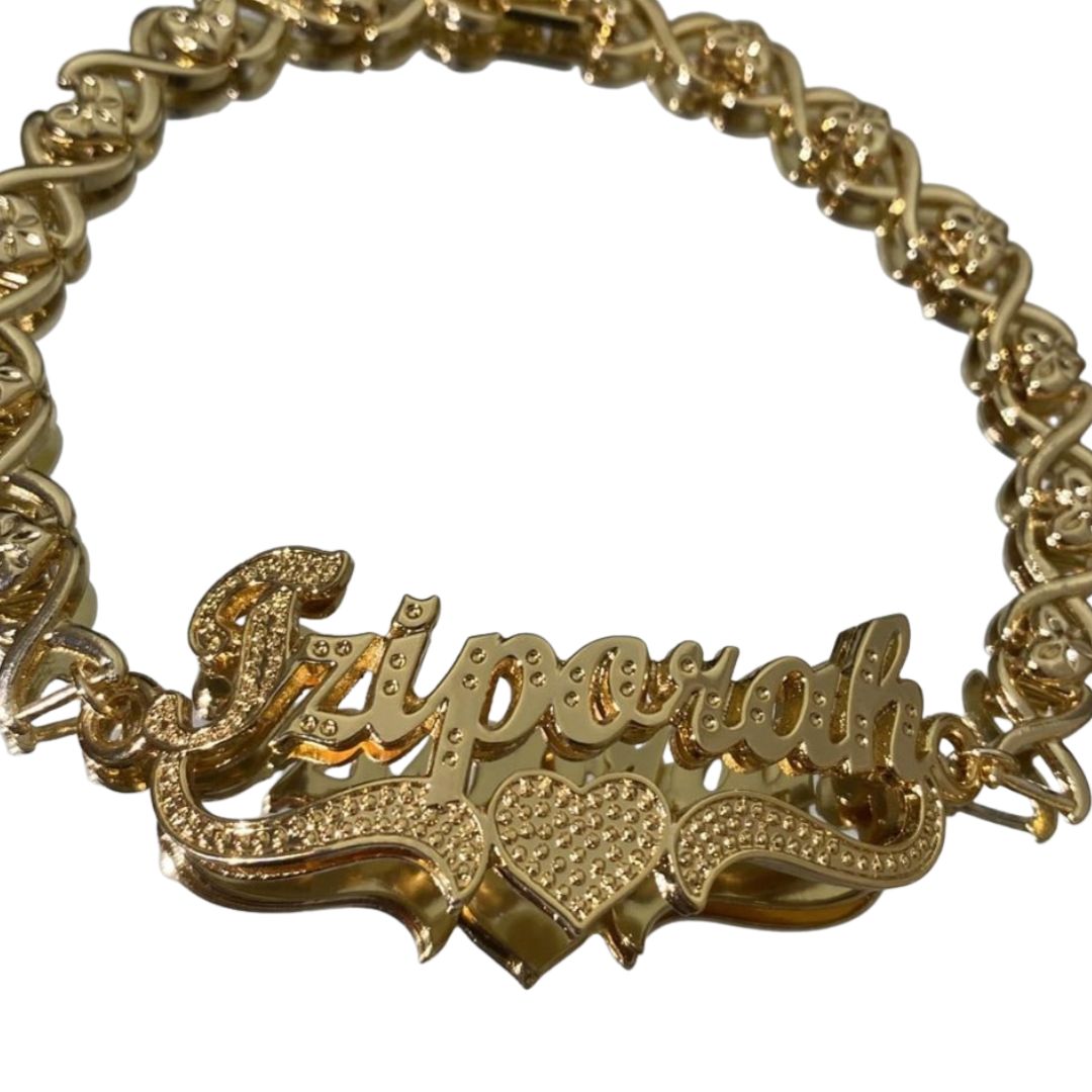 Not plated once, but twice. Add a bold and sassy edge to the way you accessorize with our Double Plated Custom Heart Bracelet. A beautifully crafted statement piece that is sure to take your look to the next level. This stunning addition is double processed and plated with 18K gold, rose gold, or platinum, and completed with an infinity heart chain. Perks? You'll never have to worry about this bracelet tarnishing or losing its quality.