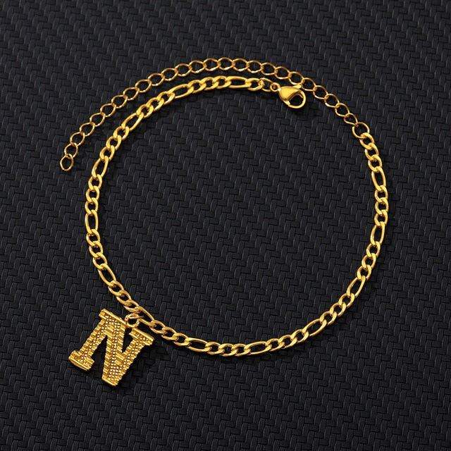 Personalize the way you accessorize with the Muse Initial Anklet. Style this anklet with a summer look, or spice up the way you leisure. Have your order processed and plated with 18K gold with any letter charm you choose. You'll never have to worry about this anklet tarnishing or losing its quality. Best part? It's in your budget!