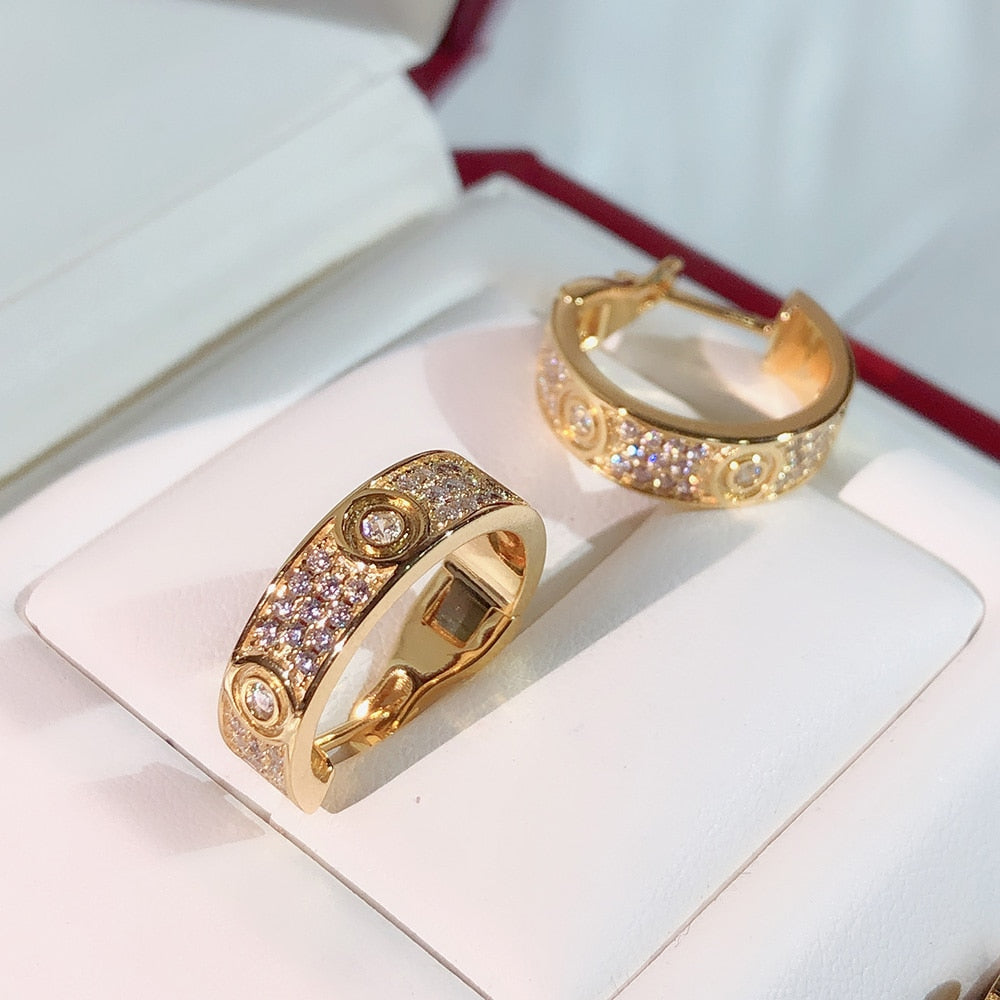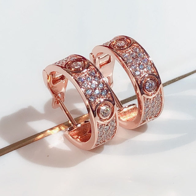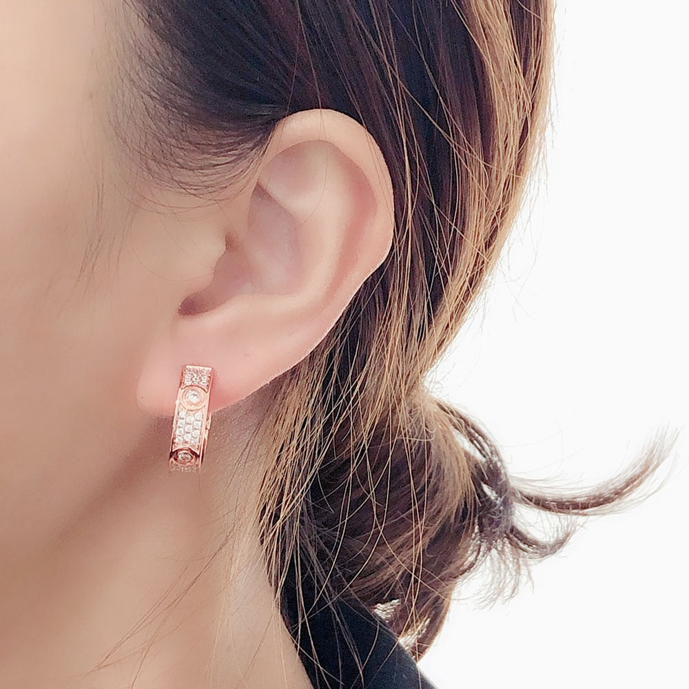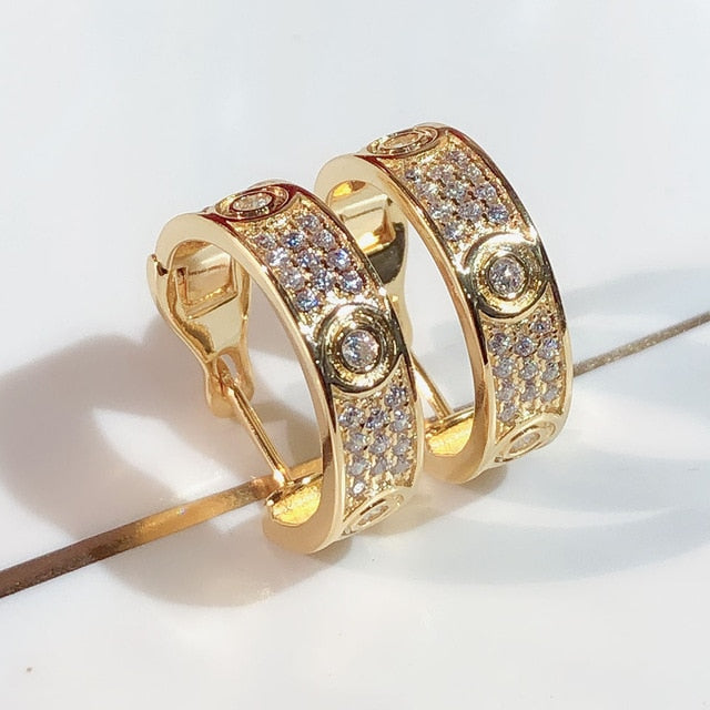 Get the luxury look at the most affordable price with the MUSE Bling Earrings. Set with heart-shaped swiss pure AAA cubic zirconia and hand polished to a pristine shine, this bangle is sure to catch eyes. Communicate your love and appreciation and upgrade the way you or a loved one accessorizes today. Choose to have your order processed and plated with 18K gold, rose gold, or platinum over 304 stainless steel. You'll never have to worry about these earrings tarnishing or losing their quality.