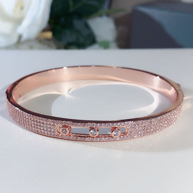 Get the luxury look at the most affordable price with the MUSE Shimmer Bangle. Set with heart-shaped swiss pure AAA cubic zirconia and hand polished to a pristine shine, this bangle is sure to catch eyes. Choose to have your order processed and plated with 18K gold, rose gold, or platinum over 304 stainless steel. You'll never have to worry about this bangle tarnishing or losing its quality.