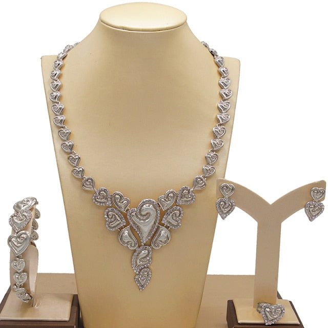 A stunning addition to your next high profile outing. This exquisite set is perfect for weddings, birthdays, proms, anniversaries, concerts, you name it! Each piece is processed and plated with 18K gold or platinum over 304 stanless steel.  This sets is embellished with pure swiss AAA crystals and polished to a pristine shine. You'll never have to worry about this set tarnishing or losing its quality.