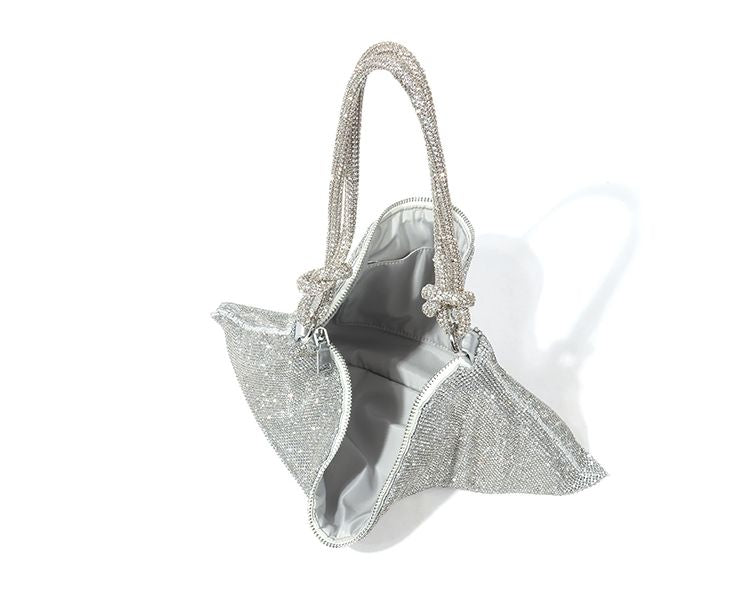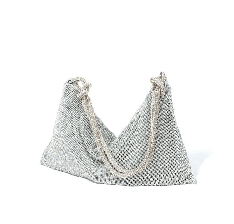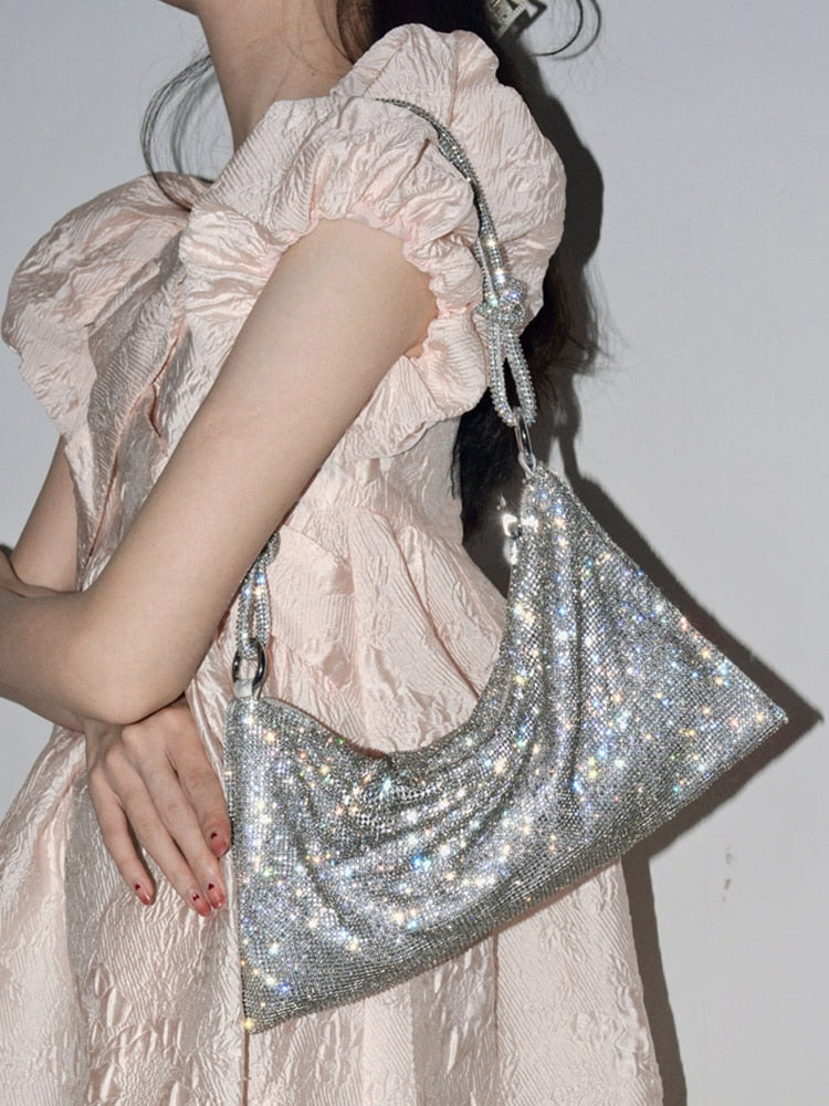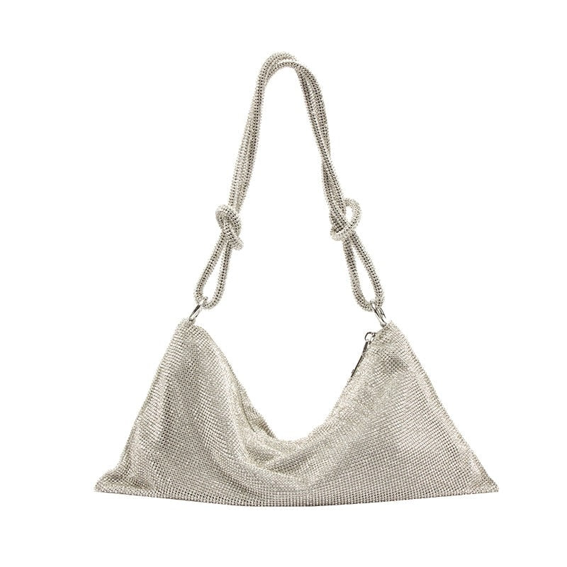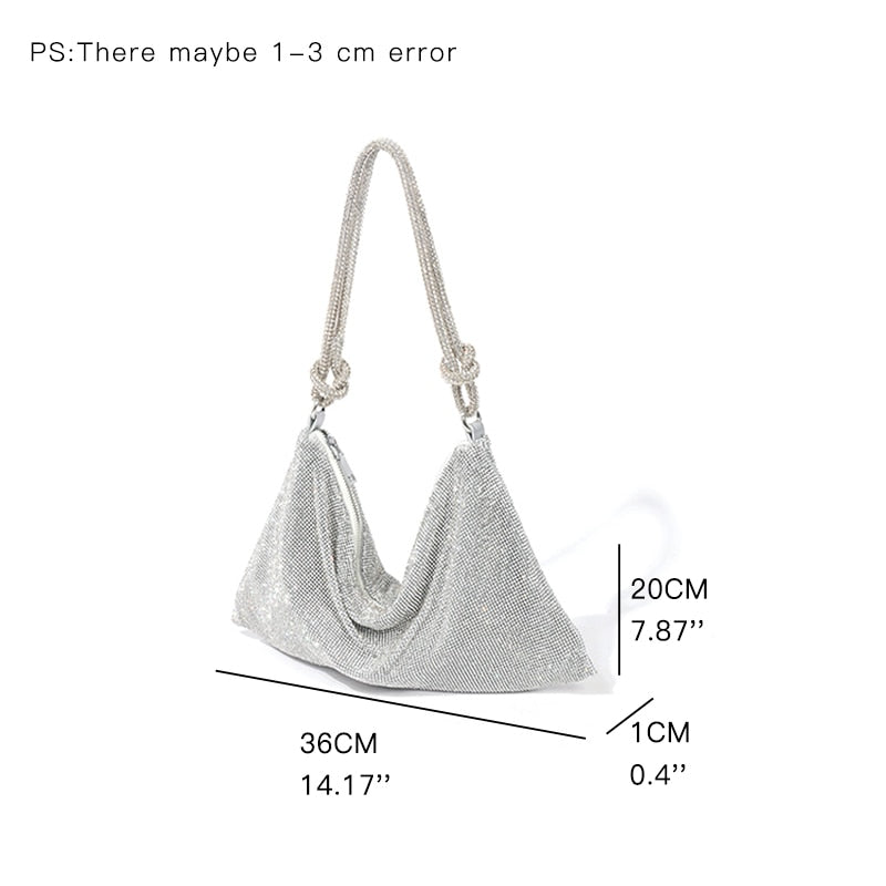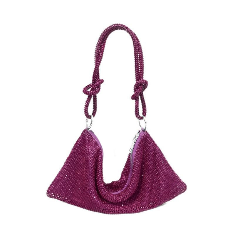 Shimmery, sparkling, and splendid! A premium bag that will complete your next party look. Wear it across your shoulder, on your wrist, on your hip, or clutched by a fresh set. Take your outfit to the next level with this glamorous handbag. Choose from a variety of different colors and stand out muse!