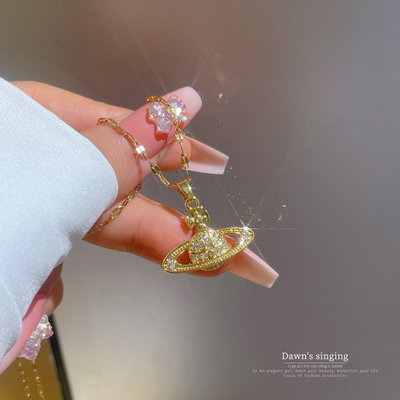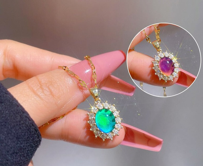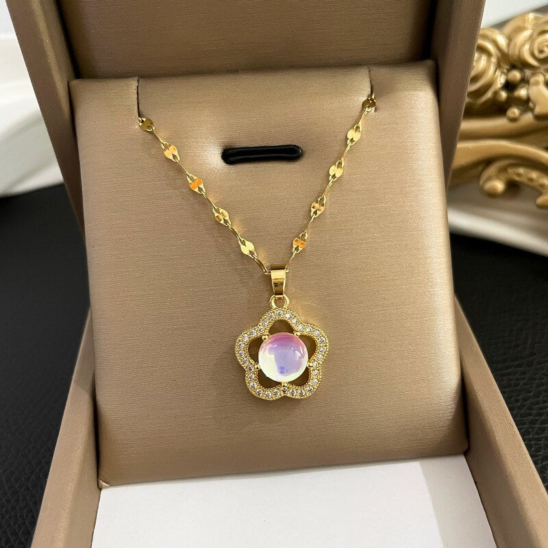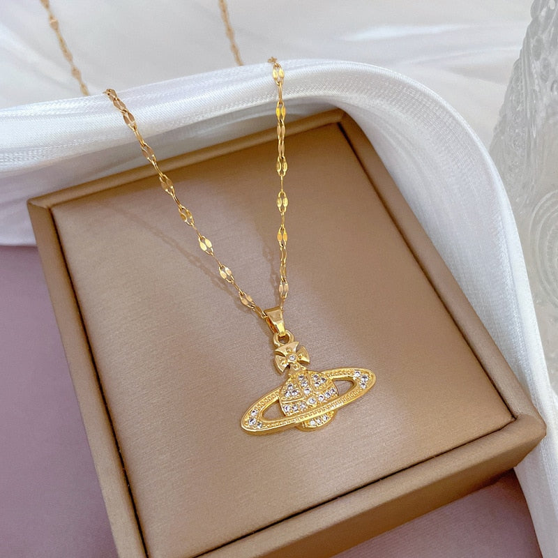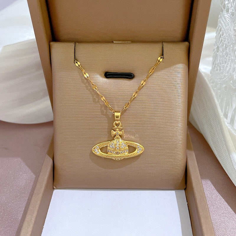 A collection of dazzling crystal and gem accessories. Each necklace is processed and plated with 18K gold or platinum over 304 stainless steel.
