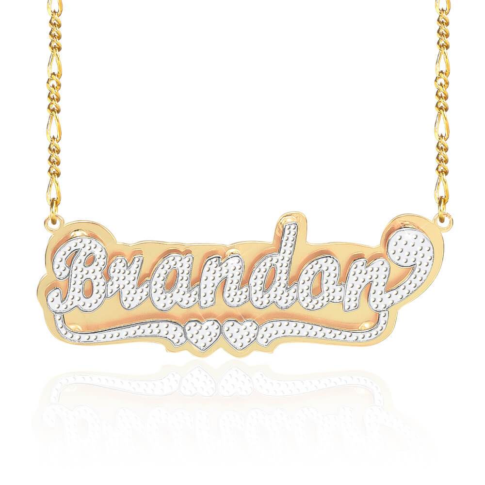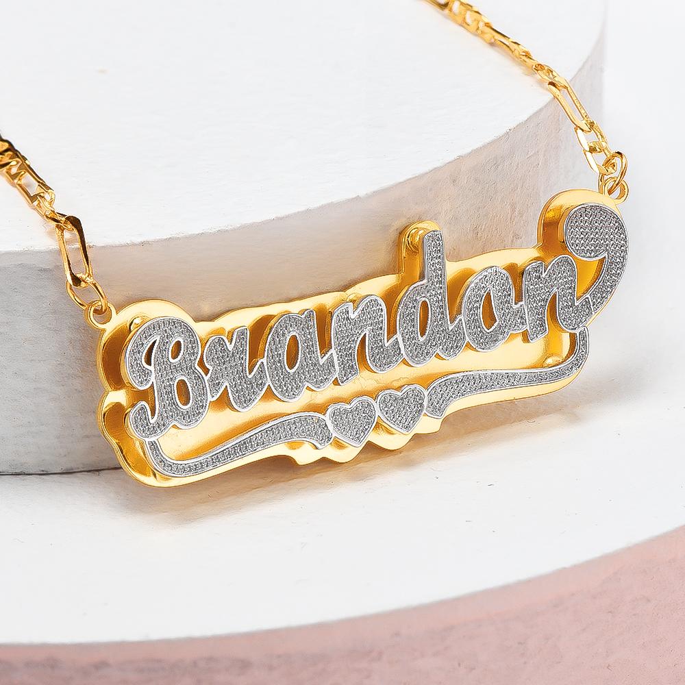 Not plated once, but twice. Add a bold and sassy edge to the way you accessorize with the MUSE Two-Toned Double-Plated Custom Heart Necklace. A beautifully crafted statement piece that is sure to take your look to the next level. Double processed and plated with 18K gold, rose gold, or platinum for you to choose from. Perks? You'll never have to worry about this necklace tarnishing or losing its quality.