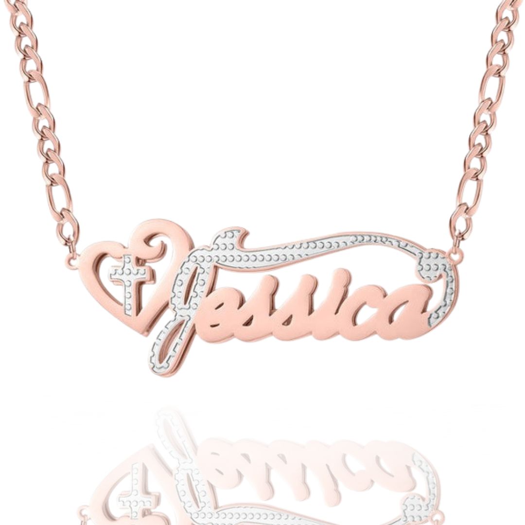 A two-toned masterpiece, this piece is a favorite among many muses. This chunky custom necklace is plated twice with high-quality 18K gold and detailed with platinum. Personalize the way you accessorize and add your personal stamp in 14K white gold to the three-dimensional stacked design. Available metal colors include gold, rose gold, and platinum. Perks? You'll never have to worry about this necklace tarnishing or losing its quality.