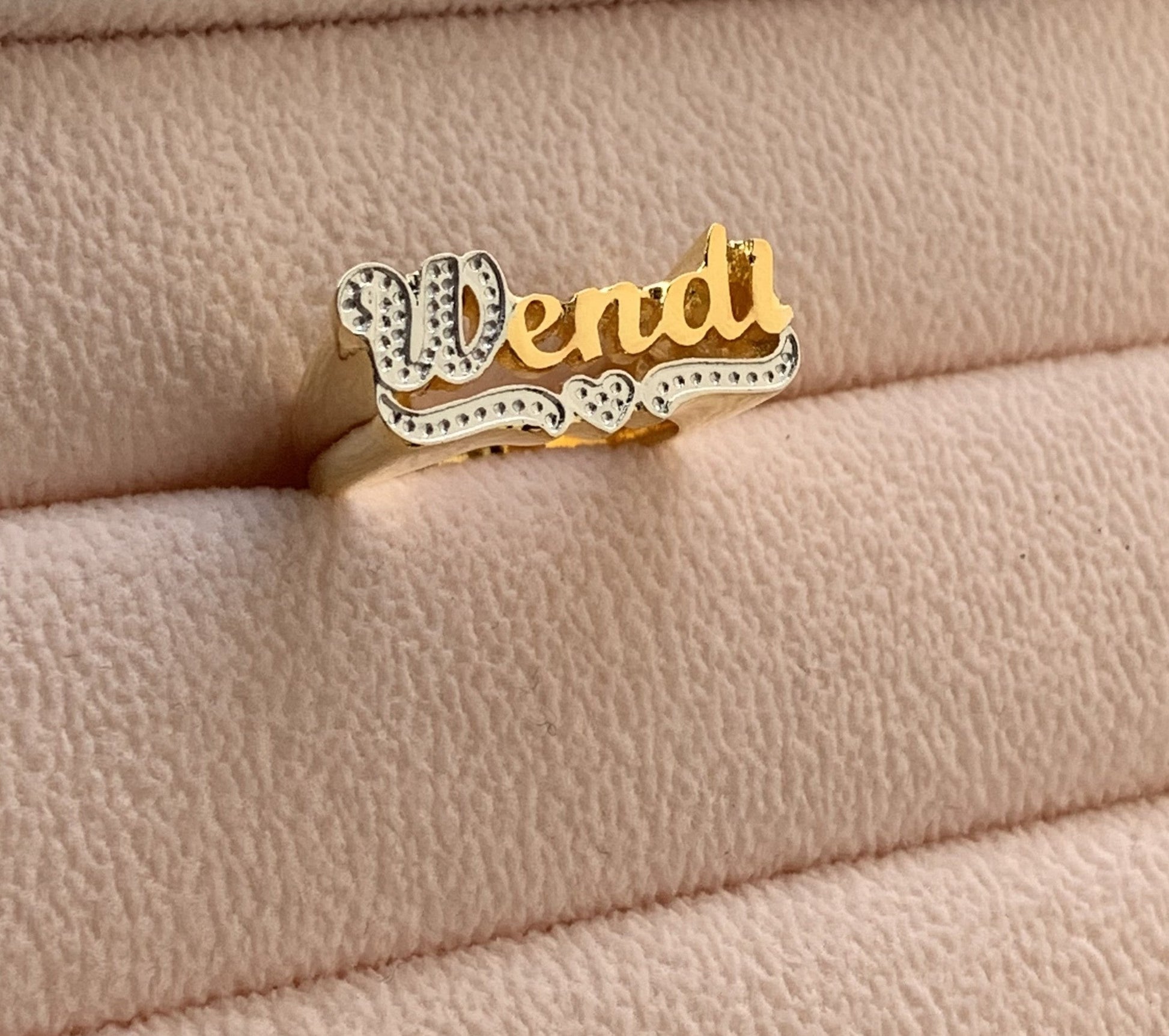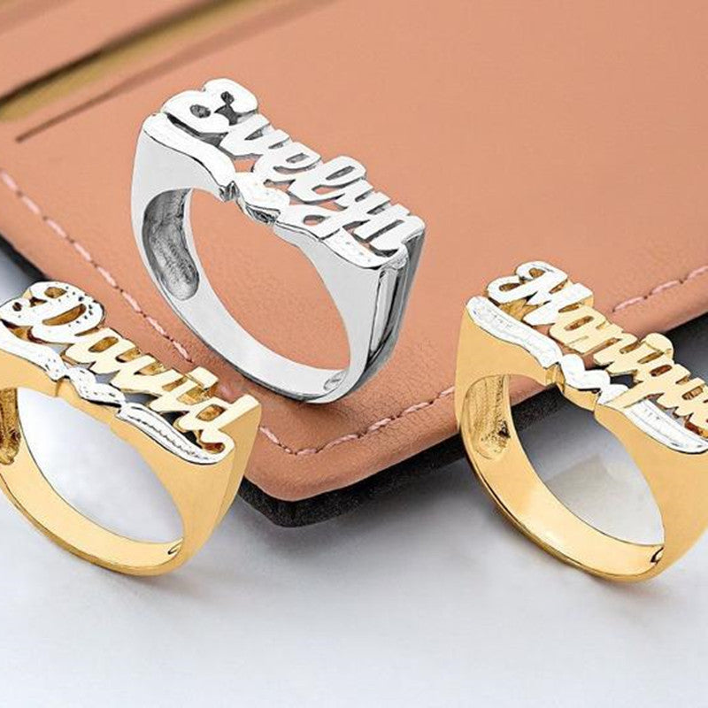 A two-toned masterpiece, this piece is a favorite among many muses. This chunky custom ring is plated twice with high-quality 18K gold and detailed with platinum. Personalize the way you accessorize and add your personal stamp in 14K white gold to the three-dimensional stacked design. Available metal colors include gold, rose gold, and platinum.