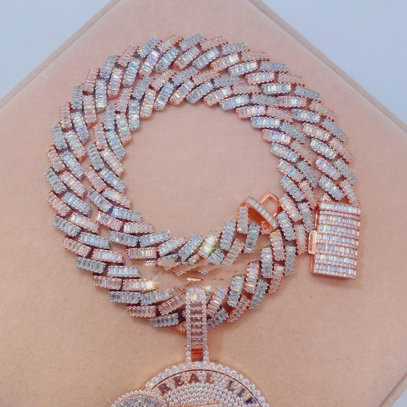 This design includes a pendant that is plated 5 times with 14K gold, rose gold, or platinum. Customize further by choosing a symbol to top off your pendant. Choose to have your chain set with precision cut crystals or moissanite diamonds. To finish off the crafting process, all chains are hand polished to a pristine shine.