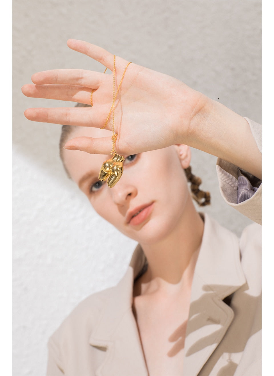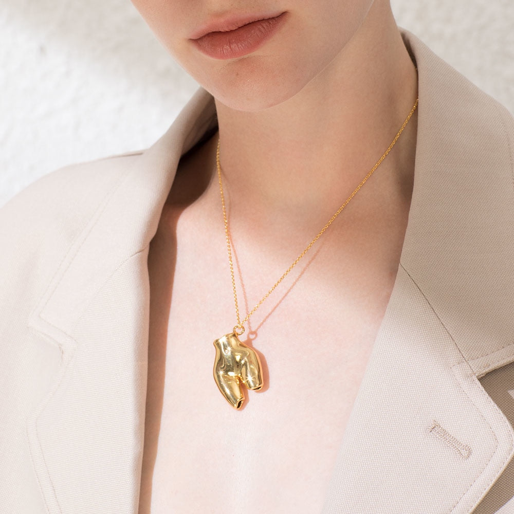 A MUSE Art Jewelry staple. This piece was created to pay homage to the dynamic and unique nature of the female body. Add this bold masterpiece to your cart and thank us later. Beautifully handcrafted from 18K gold-plated metal and polished to a pristine shine, this piece is sure to catch eyes.