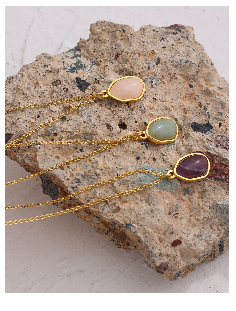 Shop our stunning array of natural healing gems that symbolize protection, and are culturally known to promote spiritual well being. Processed and plated with 18K gold over 304 stainless steel, you’ll never have to worry about this piece tarnishing or losing its quality.