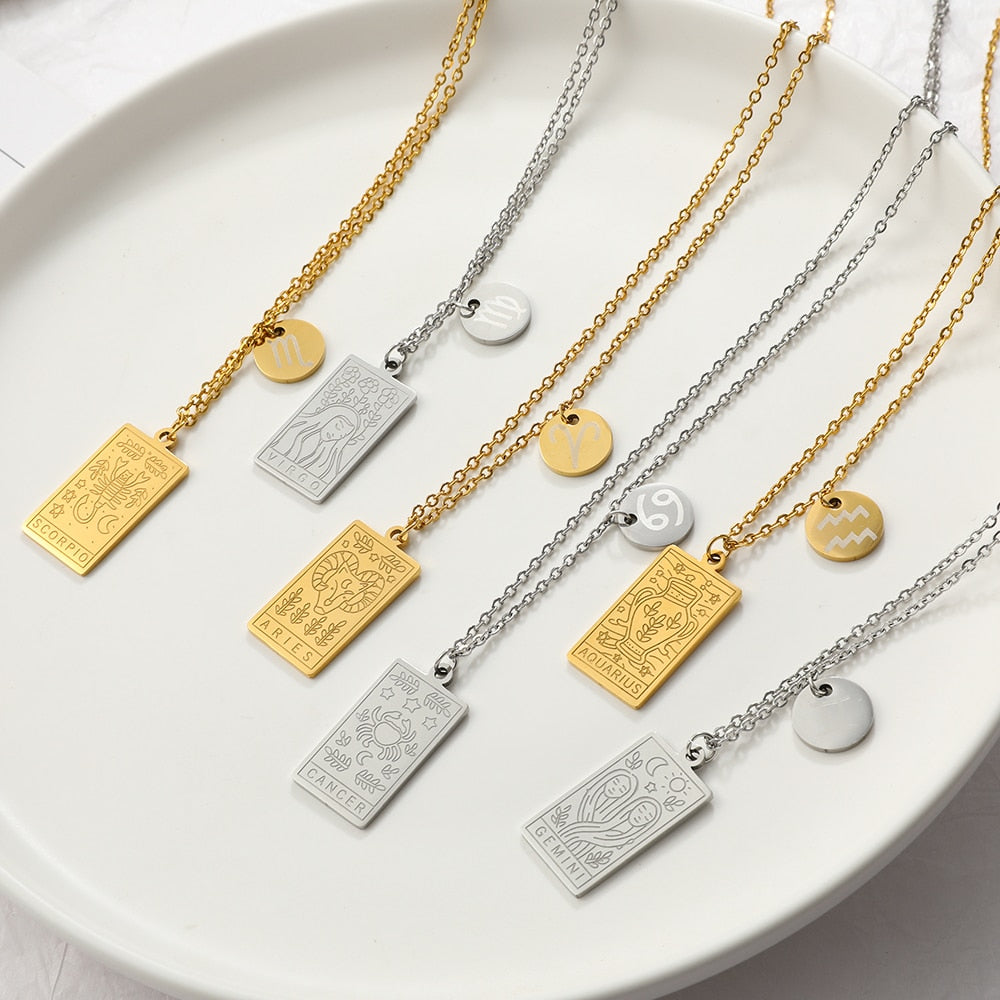 What's your zodiac sign muse? Select below to see our handcrafted design of your sign's symbol and constellation. This piece is processed and plated in 18K gold or platinum for you to choose from. It is then polished to a pristine shine to add an edgy personal stamp to your daily look. Perks? You'll never have to worry about this necklace tarnishing or losing its quality.